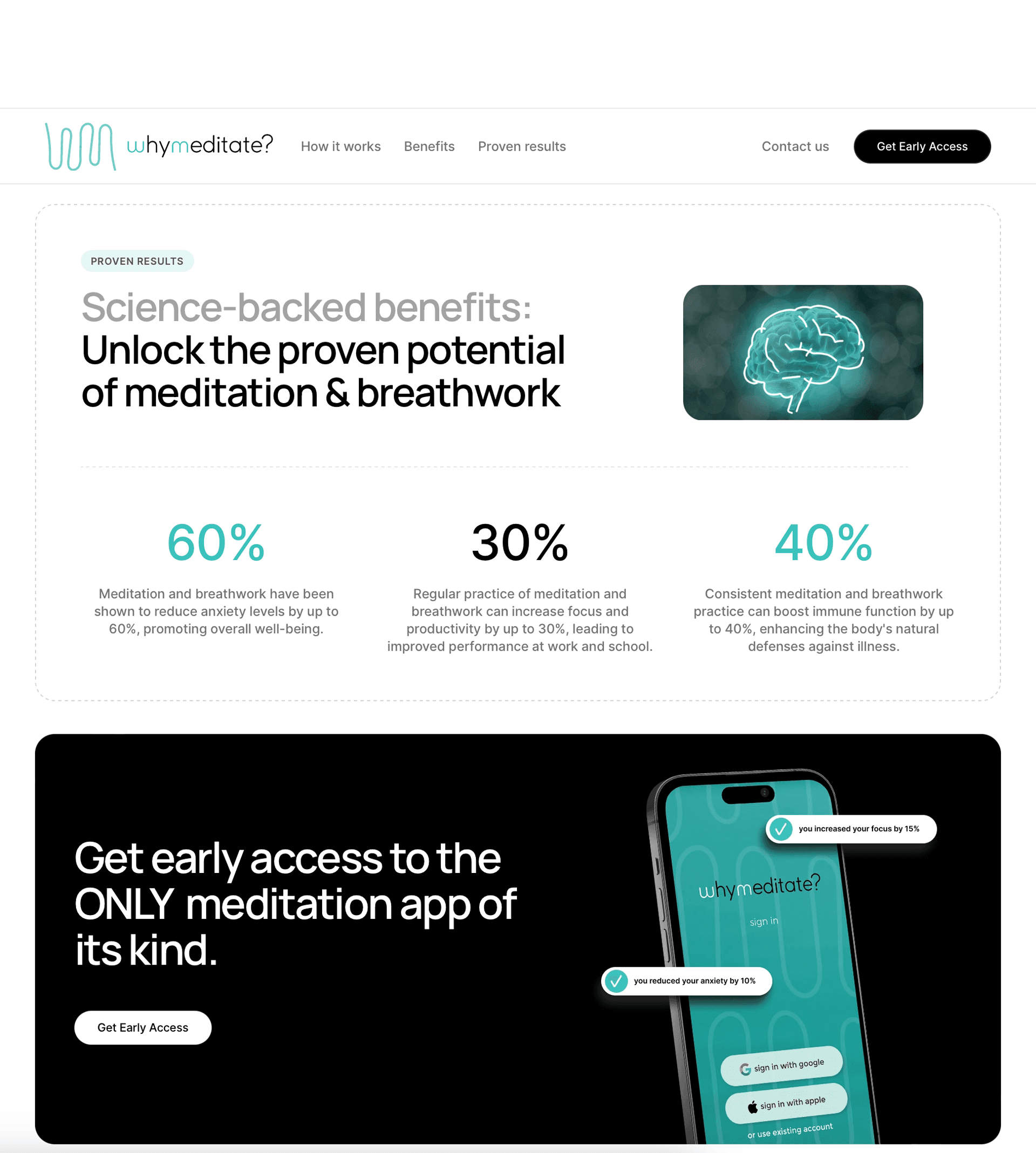 The website reflects the app's simplicity and user-friendliness. Its clean and intuitive design makes it easy for users to explore the app's features and learn about the benefits of meditation. Consistent visuals and messaging ensure a seamless online experience.