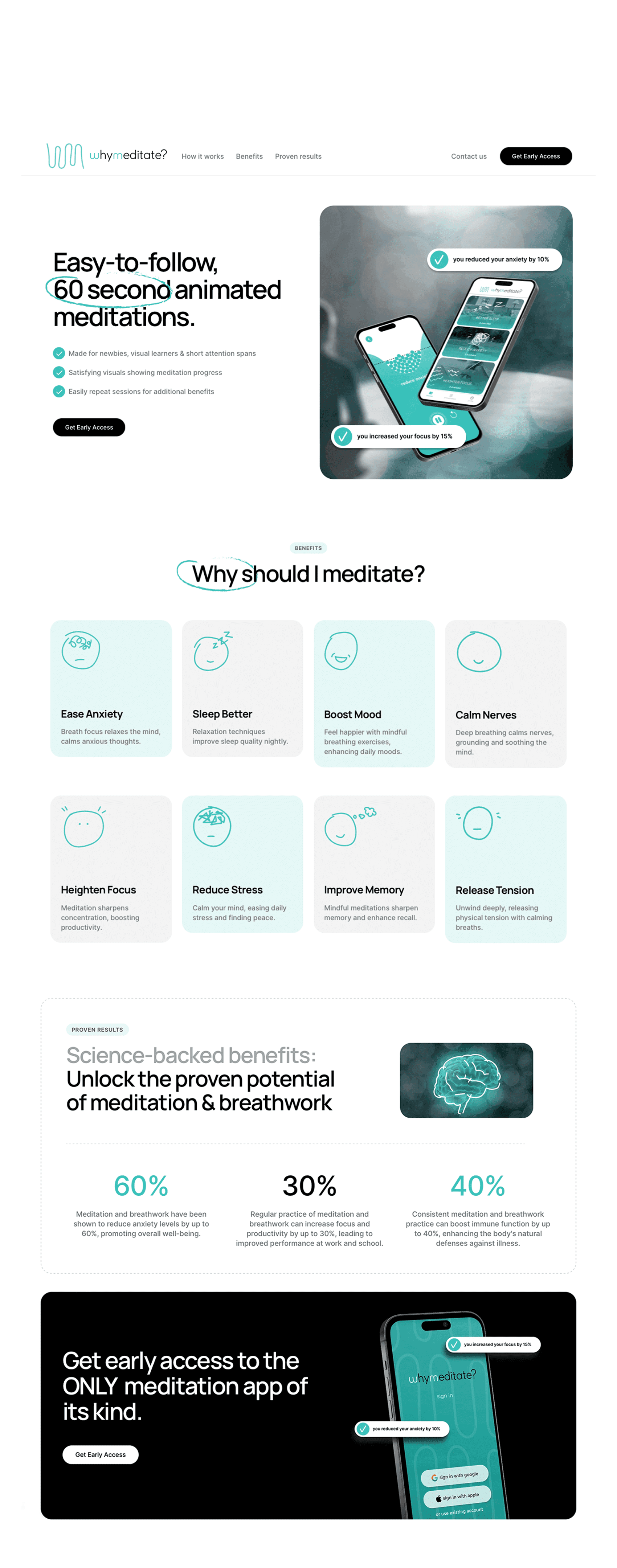 WhyMeditate is an innovative app that revolutionizes meditation for beginners and those who have struggled with traditional meditation techniques. With engaging 60-second animated sessions, WhyMeditate makes it easy for first-timers, visual learners, and people with short attention spans to experience the benefits of meditation.